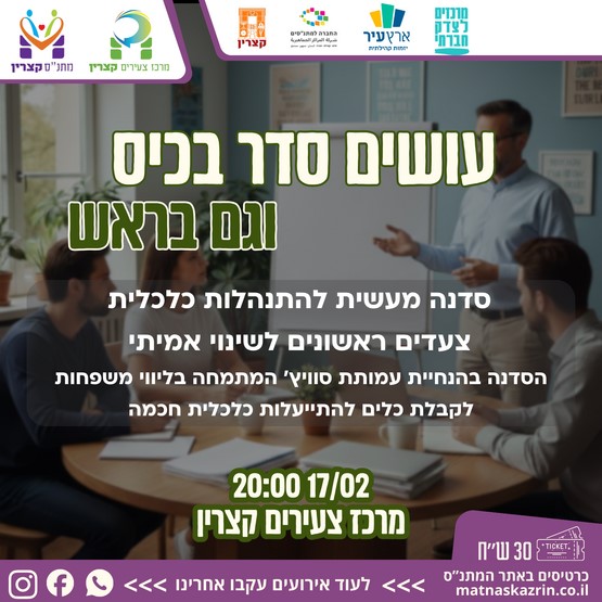 עושים סדר בכיס וגם בראש - הרצאה פרקטית לזוגות ולמשפחות ומתאימה לכל מי שרוצה לשפר את ההתנהלות הכלכלית שלו.