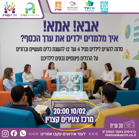 בהרצאה תקבלו כלים מעשיים וברורים ללימוד הרגלים פיננסים נכונים עבורכם ועבור ילדיכם.